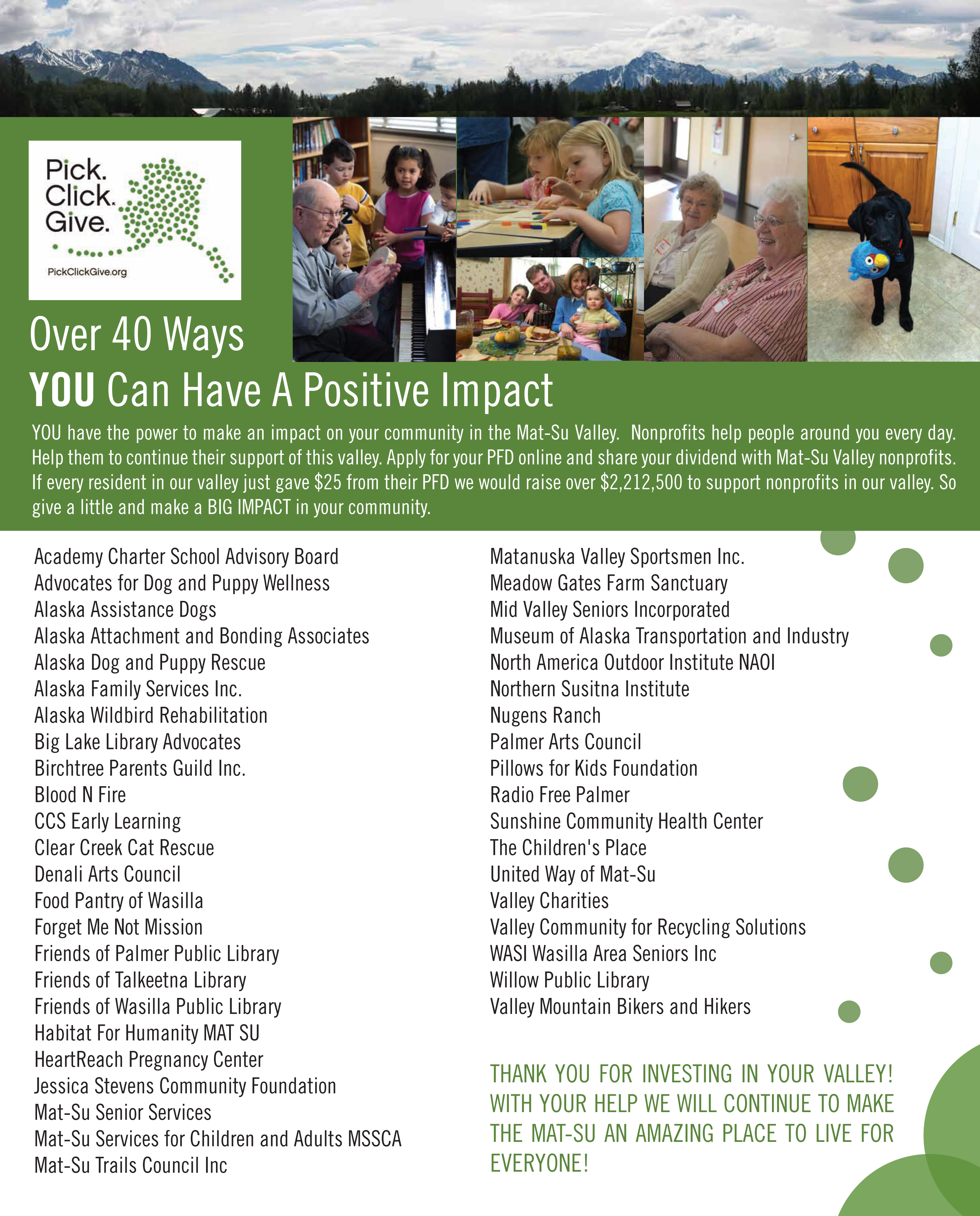 This was a layout done for a local newspaper ad encouraging people to Pick.Click.Give with their PFD they received through the state of Alaska.
